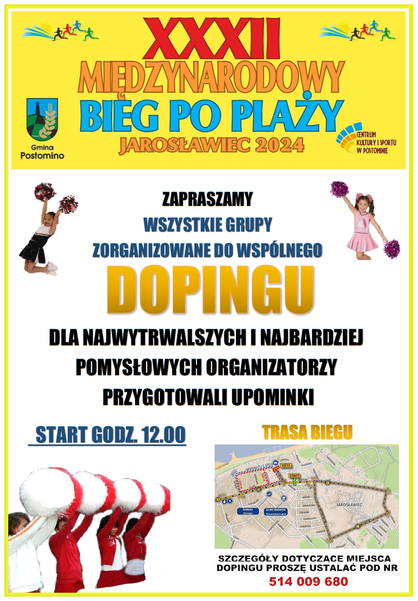Wszelkie zapytania dotyczące Biegu Po Plaży, który odbywa się co roku w Jarosławcu prosimy kierować do organizatora Centrum Kultury i Sportu w Postominie