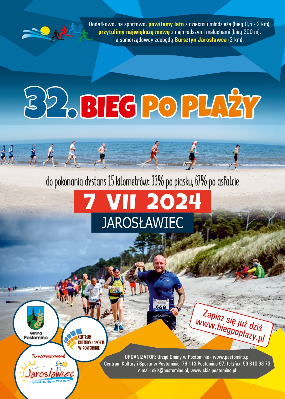 W piątek 1 marca br. rozpoczynamy zapisy do 32. edycji BIEGU PO PLAŻY w Jarosławcu oraz 27. BIEGU SAMORZĄDOWEGO „Bursztyn Jarosławca”. Serdecznie zachęcamy wszystkich do udziału w naszej imprezie. Każdy znajdzie coś dla siebie. Oprócz Biegu Głównego na dystansie 15km i Biegu Samorządowego na dystansie 2,2 km odbędą się również biegi dla „Milusińskich” (poniżej 6 lat), Biegi Młodzieżowe dla roczników od 2009 do 2016, Bieg Rekreacyjny „Podziel się Życiem”, a także Mistrzostwa Strażaków PSP i OSP (15km).