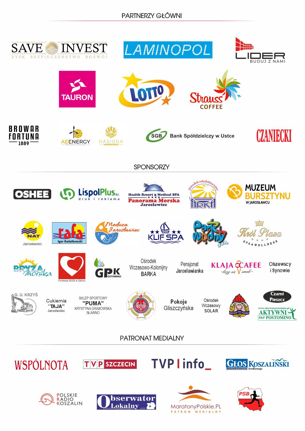 Partnerzy i sponsorzy Biegu po Plaży 2025 Partnerzy i sponsorzy Biegu po Plaży 2025 Drukuj Kopiuj link Facebook.com X.com Data publikacji: 23.06.2025 godz. 12:25 Wyświetlono: 336 Kategoria: Aktualności Zobacz również Zobacz więcej 26.02.2025 Aktualności Start zapisów - 33. Bieg Po Plaży Uwaga! Już w niedzielę 2 marca o godzinie 16:00 rozpoczynamy zapisy na 33. Międzynarodowy Bieg Po Plaży Jarosławiec 2025! Chciałbyś poczuć wiatr we włosach i piasek pod stopami? Dołącz do nas i weź udział... 03.03.2025 Aktualności Ruszają zapisy na 33. Międzynarodowy Bieg Po Plaży... Już 2 marca o godzinie 16:00 otwieramy panele zapisoweTo idealna okazja, aby połączyć aktywność fizyczną z pięknem nadmorskiego krajobrazu. Podczas biegu czekają na Ciebie niesamowite widoki, przyjazna... 29.05.2025 Aktualności Medal 2025 Z przyjemnością prezentujemy medal na 33. Bieg Po Plaży w Jarosławcu! Symbol pasji, wysiłku i morskiej przygody. Jeżeli jeszcze się nie zapisałeś nie zwlekaj - dołącz do nas już dziś i zostaw swój...